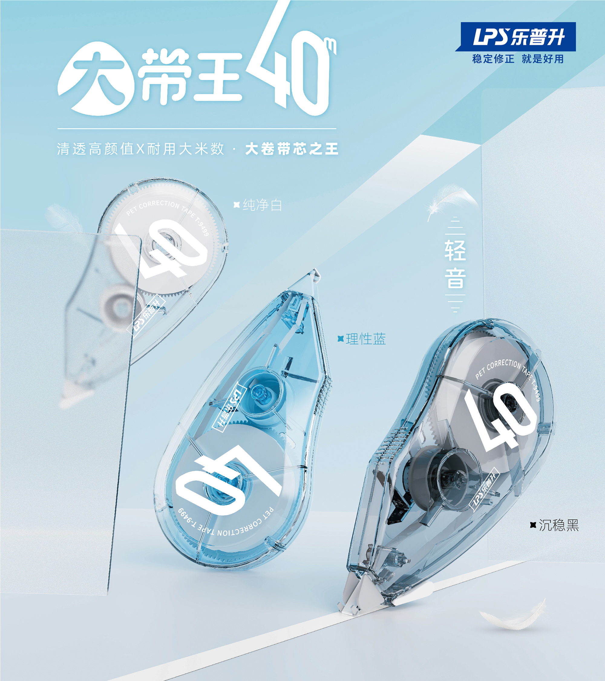 乐普升「大带王40」修正带 —— 巨能续航,一气呵成!
