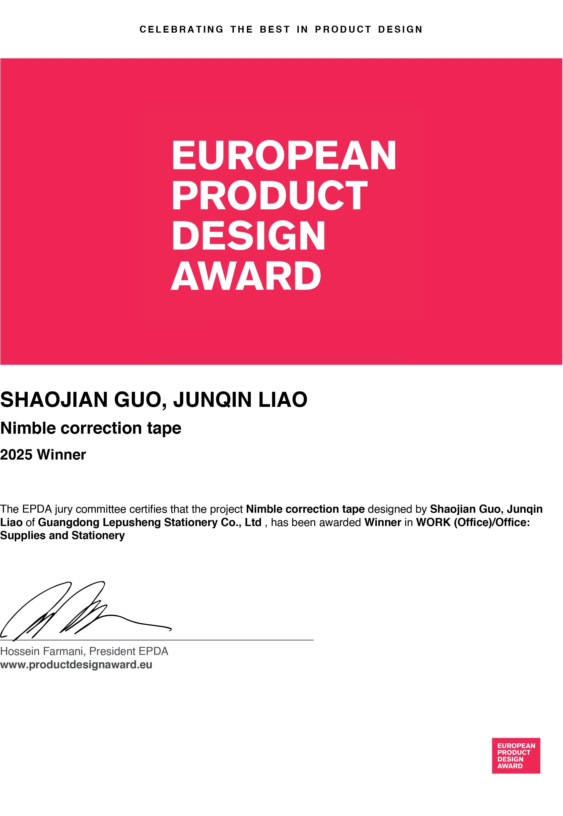 近日,全球设计界将目光投向中国文具——乐普升9178A时空UFO修正带,凭借颠覆性创意与极致实用主义,接连斩获德国iF设计奖与欧洲产品设计奖优胜奖两项国际重磅荣誉,在世界舞台上大放异彩。
