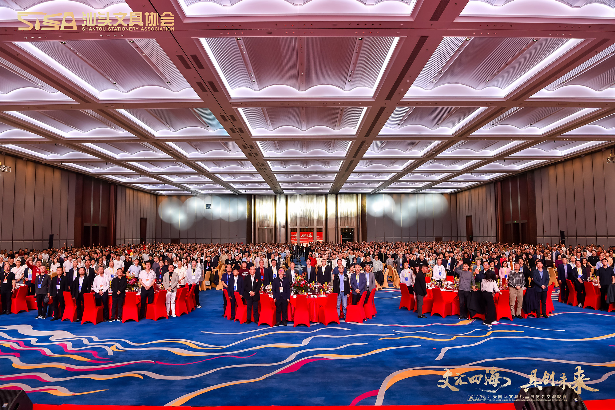 当晚,2025 汕头国际文具礼品展览交流晚宴盛大举行,近两千名全球行业嘉宾齐聚一堂,现场高朋满座,气氛热烈,共同见证了这场属于文具人的辉煌盛宴。