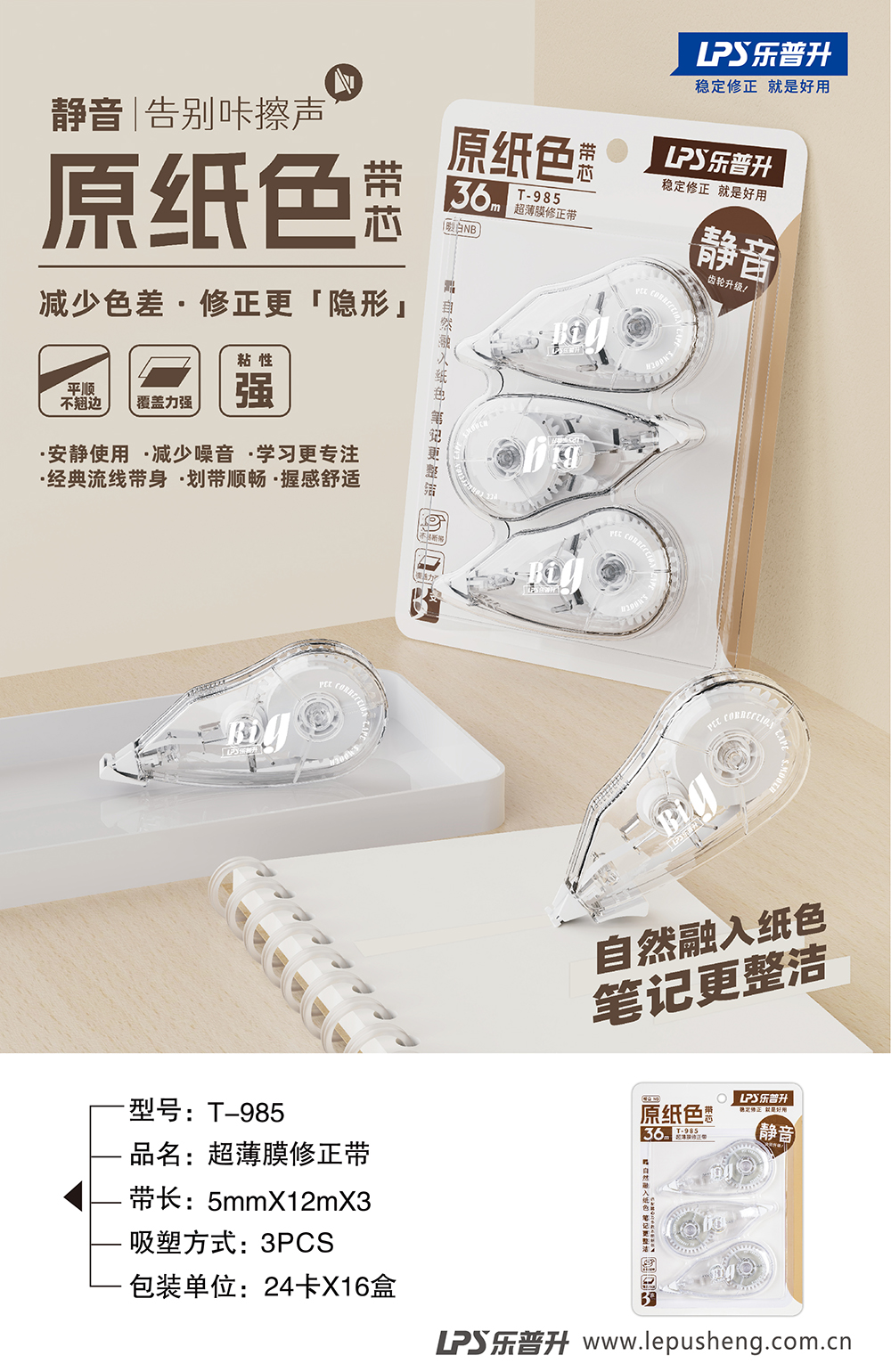 原纸色静音系列三支装T-985